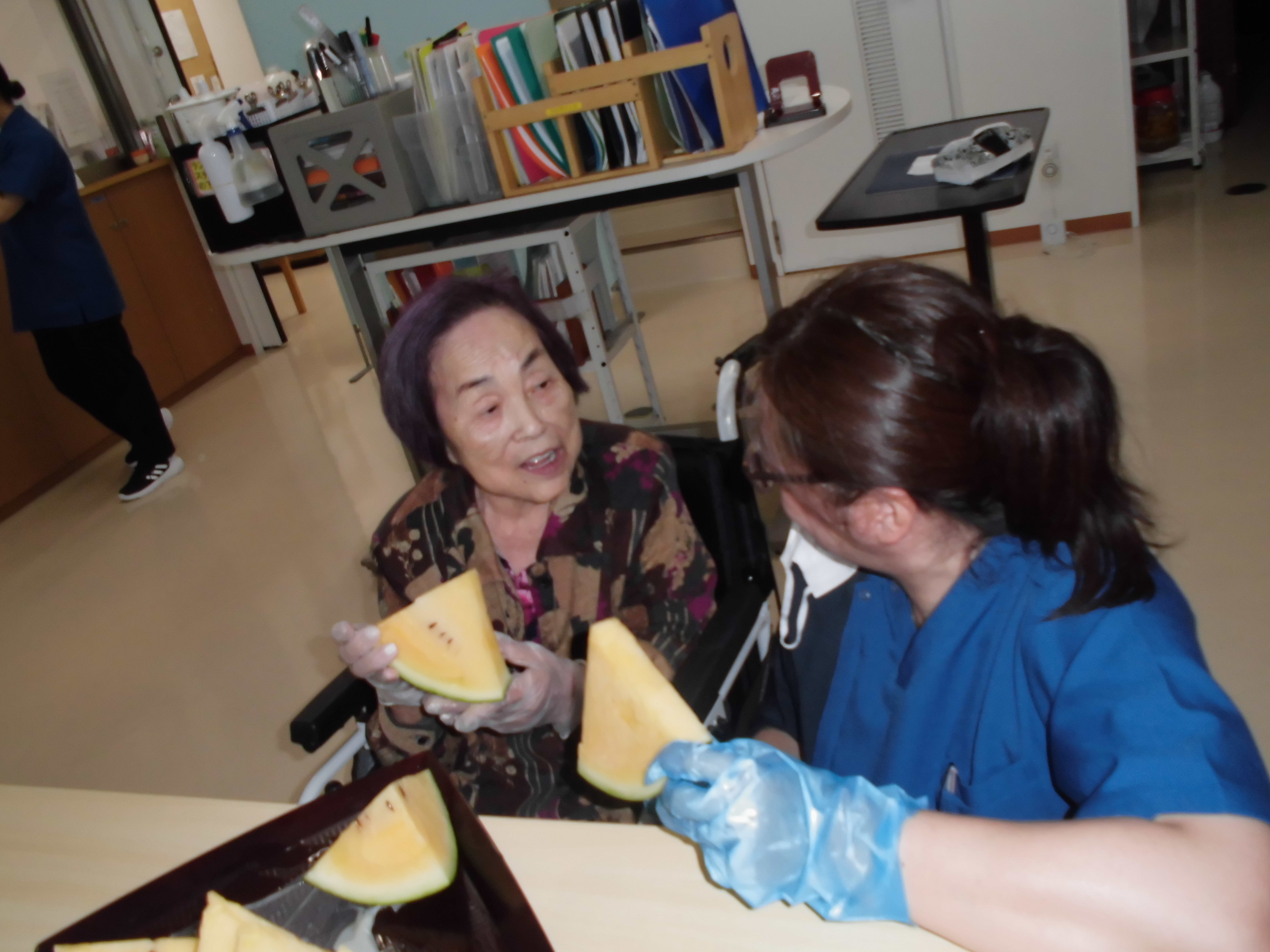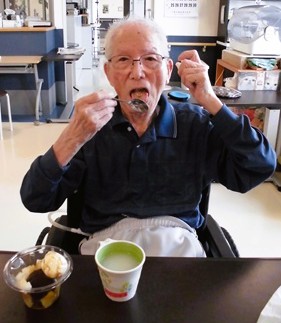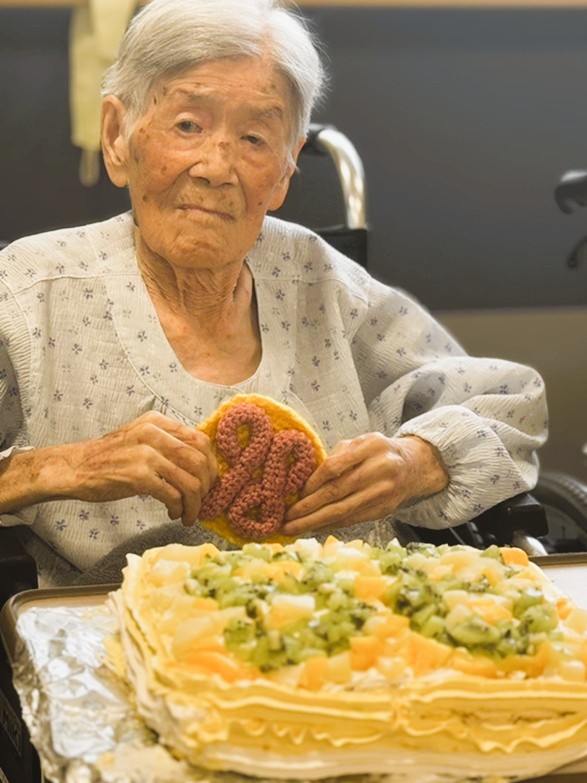 職員と利用者さんが一緒にバースデイソングを歌ったら、喜びのあまり感極まり、うっすら涙を浮かべて喜んでいただけました。