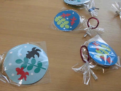 職員から手作りのフエルト生地のケーキとお花のサプライズもありました。